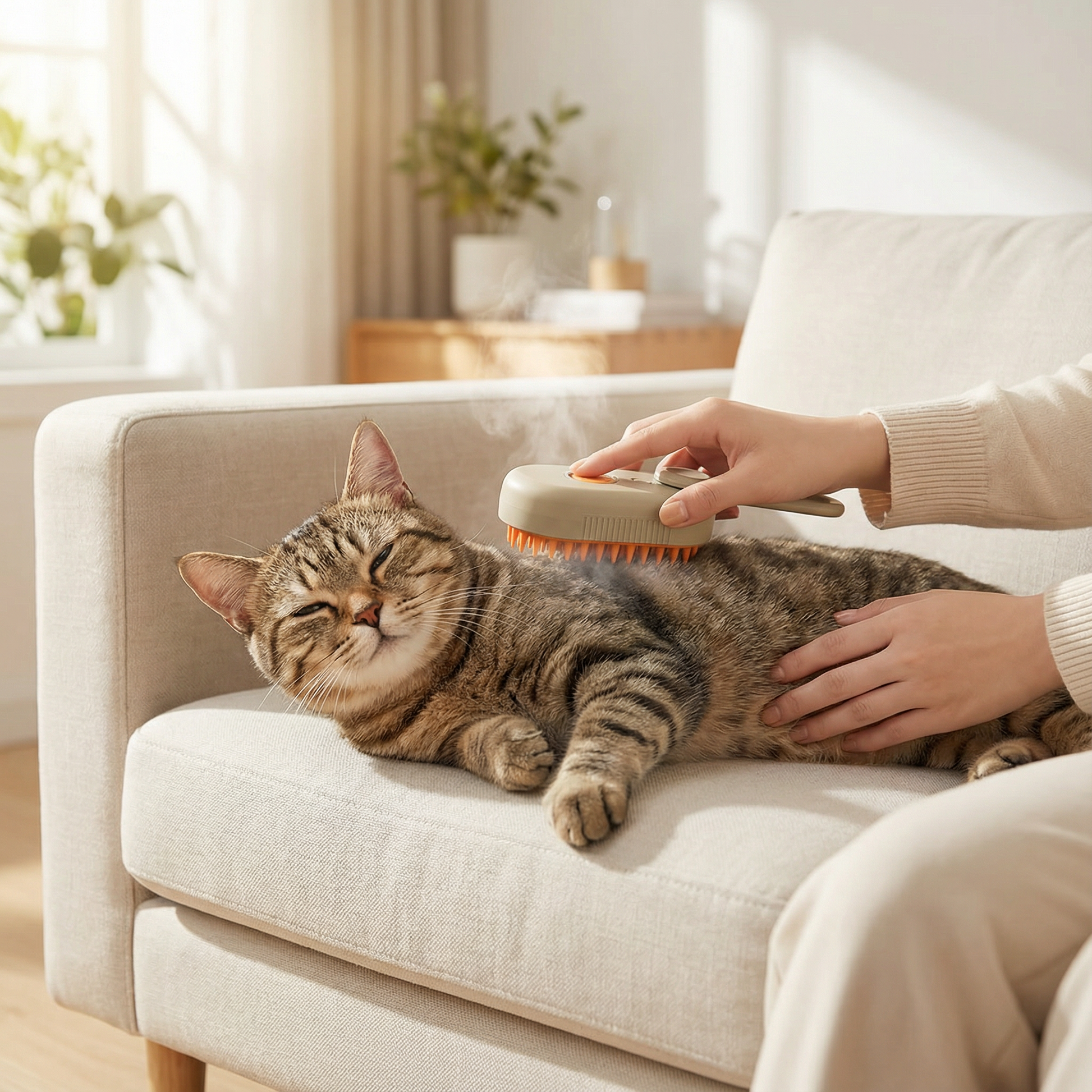 Our 3-in-1 Steam Brush provides effortless grooming using gentle mist to remove hair and boost coat shine.